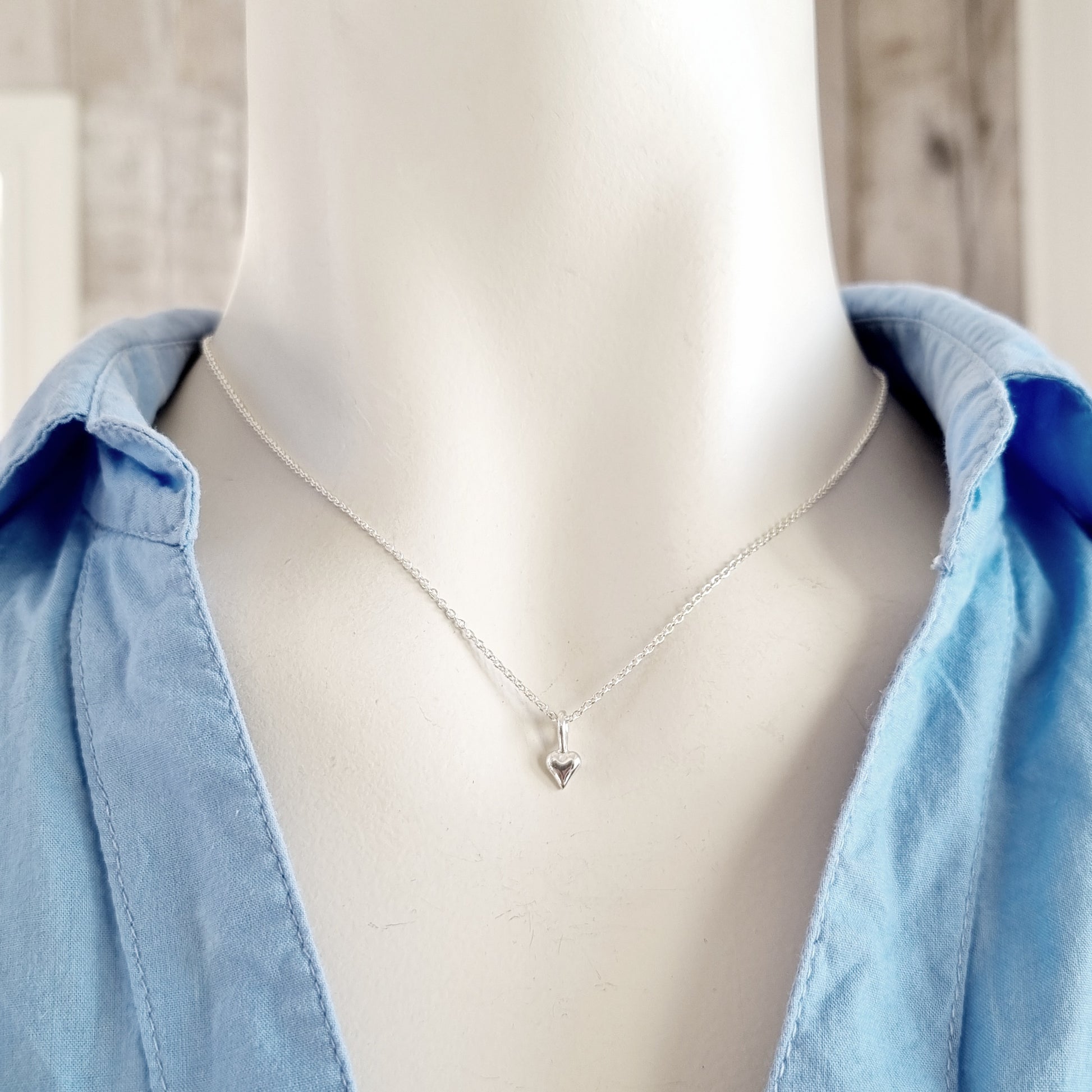Attåt-hjarte i polert sølv inkl. 40 cm kjede (rundt anker 1,3 mm). Perfekt lite halsgrop smykke.
