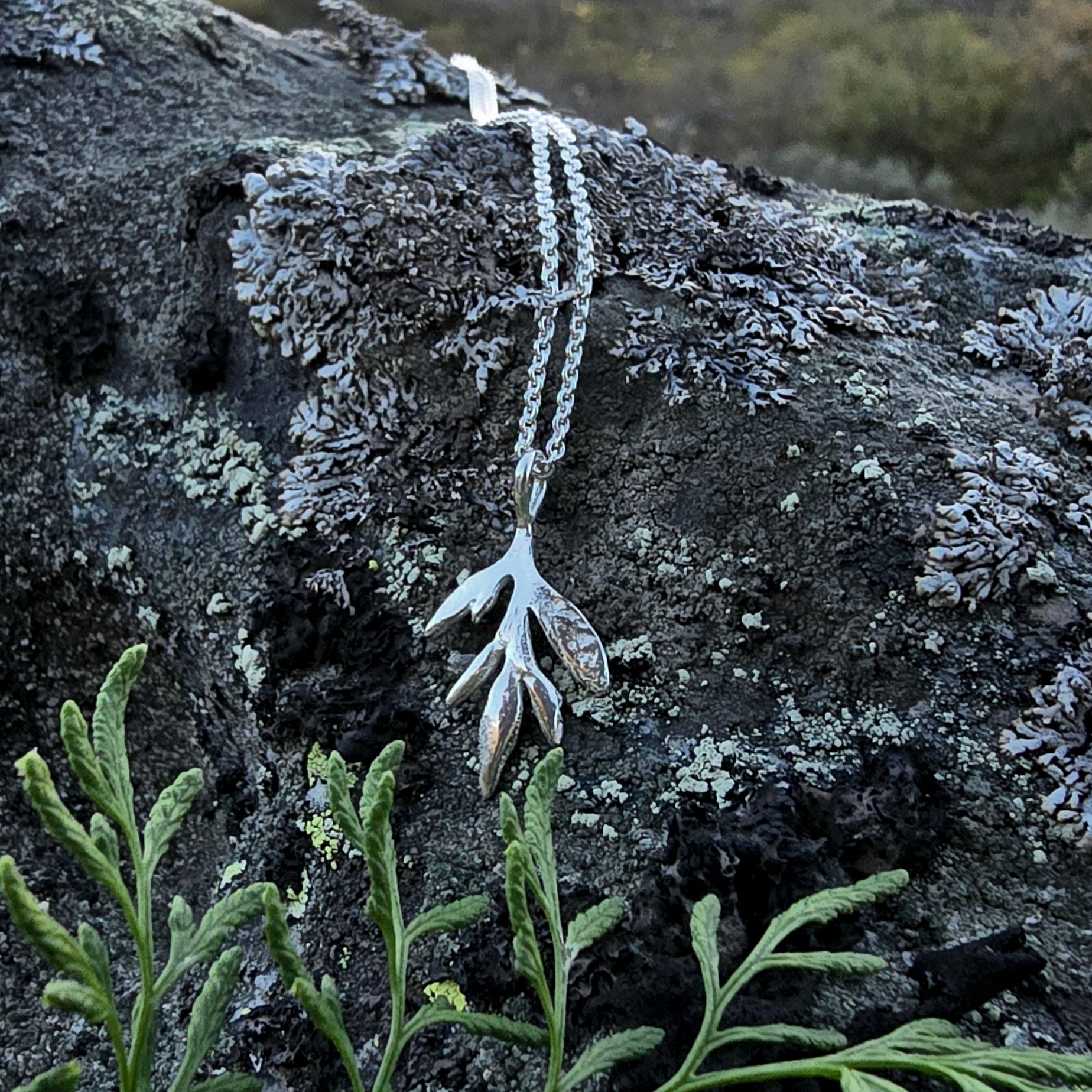 Fjellflora-serien har fått ny overflate. Alle blir ulike og unike. Kjede i regulerbar lengde 42/45 cm er inkludert i prisen, ta kontakt om du ønskjer ei anna lengde.